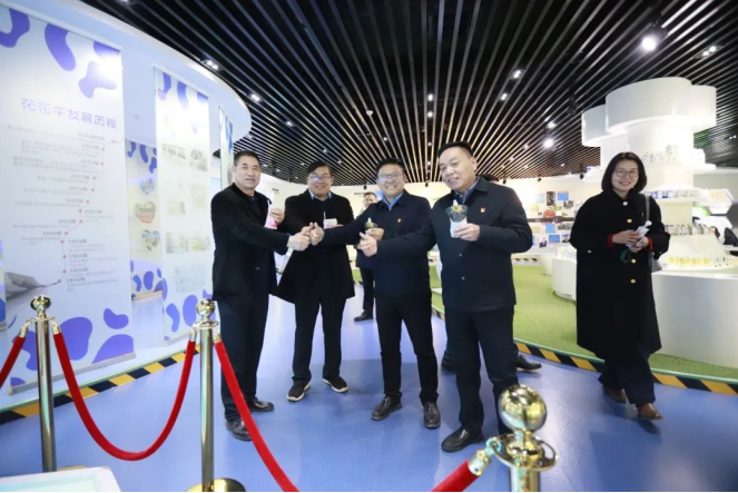 2025年2月14日,河南日报政法新闻部党支部书记、主任朱殿勇,中国收藏家协会书报刊委员会副主任杨翔飞等一行到河南花花牛乳业集团,开展以“党建引领聚合力 笃行不怠开新局”为主题的基层党支部联合主题党日活动,聚焦新时代国有企业党建创新实践与红色文化传承深度融合课题,探索媒体、学术机构与企业协同赋能的新范式。花花牛乳业集团党委副书记、纪委书记、工会主席周付产等领导陪同参观座谈。